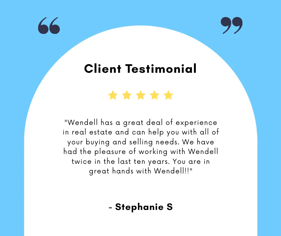 "Wendell has a great deal of experience in real estate and can help you with all of your buying and selling needs. We have had the pleasure of working with Wendell twice in the last ten years. You are in great hands with Wendell!!"